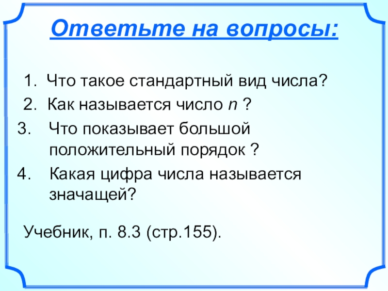 1. Можно ли про следующие числа сказать, что они записаны в стандартном виде: