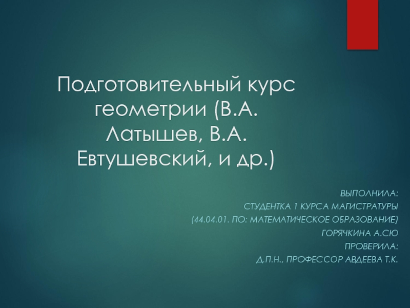 Слайд 1Подготовительный курс геометрии (В.А. Латышев, В.А. Евтушевский, и др.)