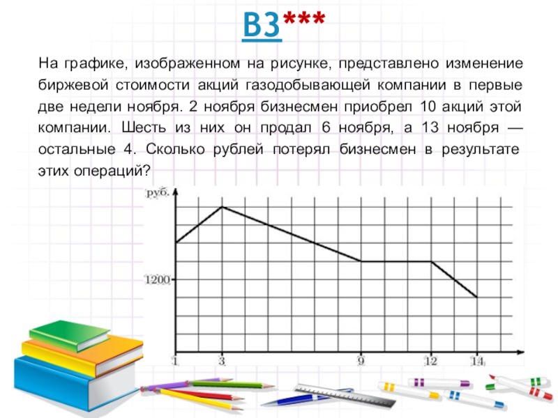 В3***На графике, изображенном на рисунке, представлено изменение биржевой стоимости акций газодобывающей компании в первые две недели ноября.