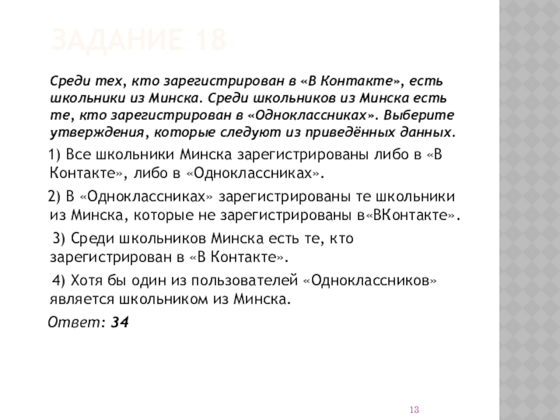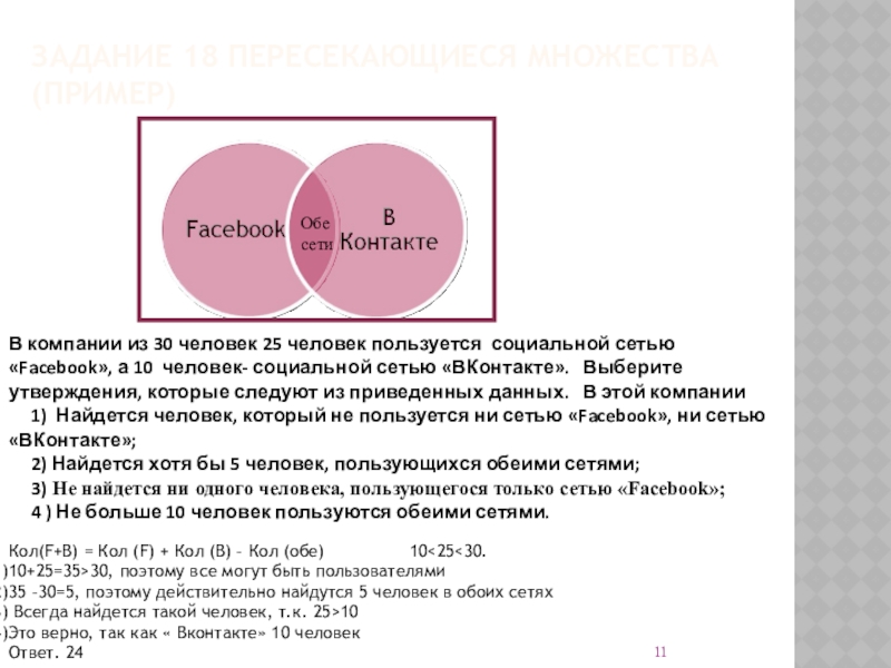 Слайд 11ЗАДАНИЕ 18 ПЕРЕСЕКАЮЩИЕСЯ МНОЖЕСТВА (ПРИМЕР)