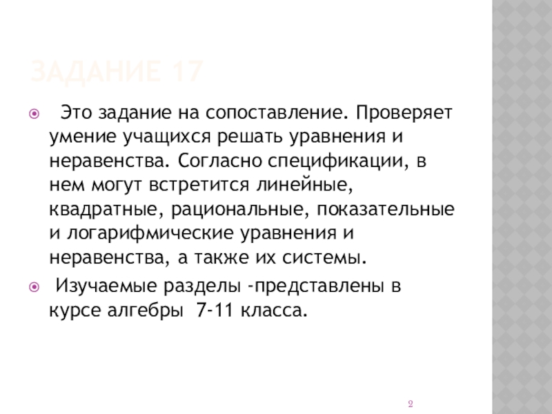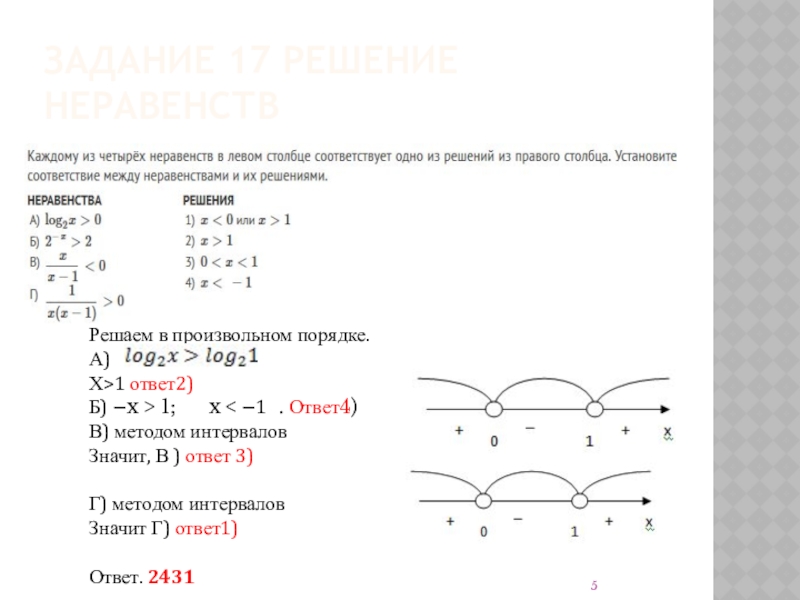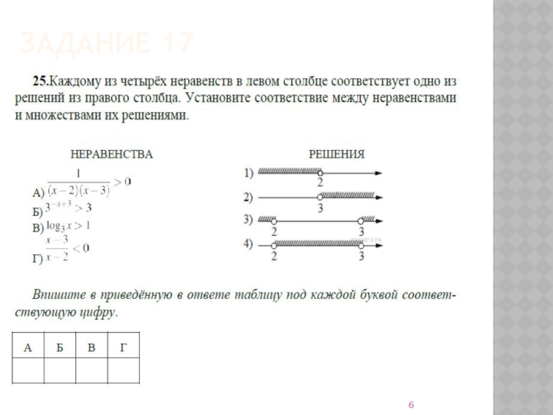 Слайд 5ЗАДАНИЕ 17 РЕШЕНИЕ НЕРАВЕНСТВ