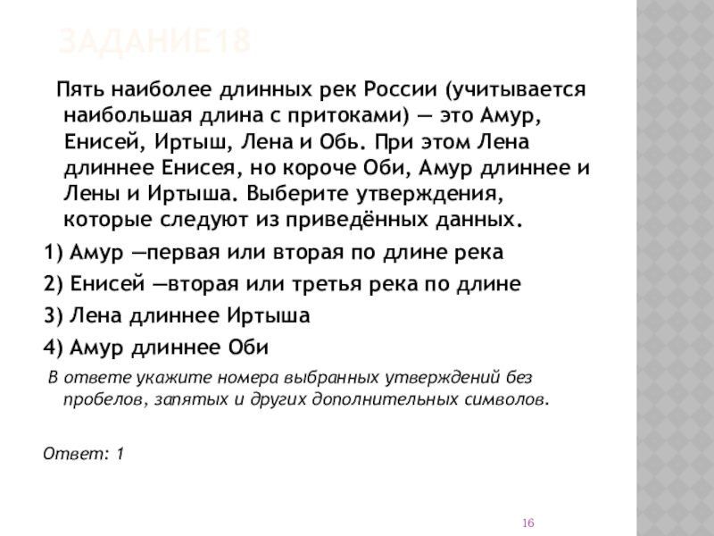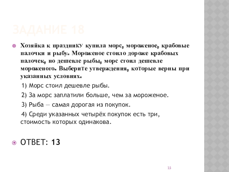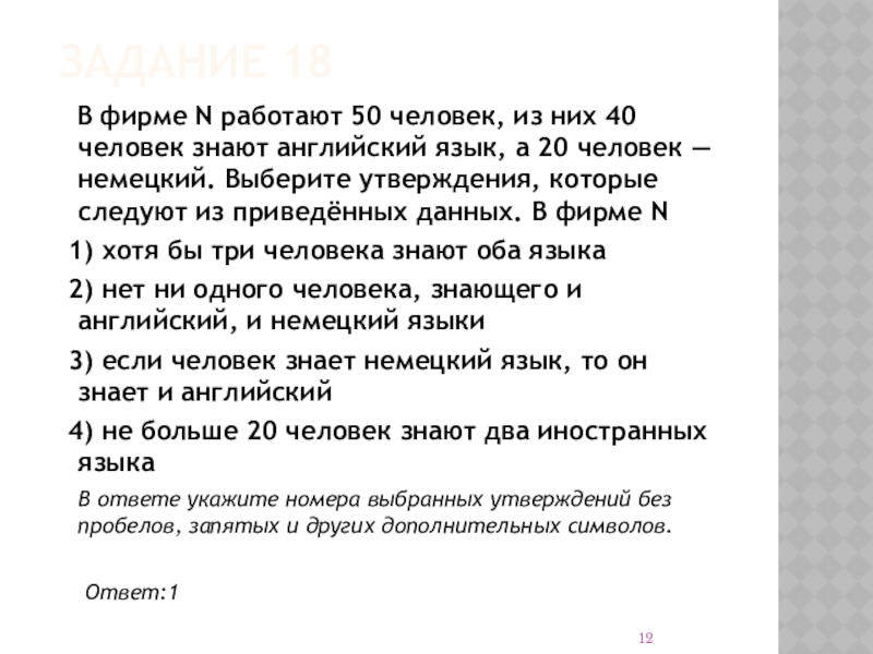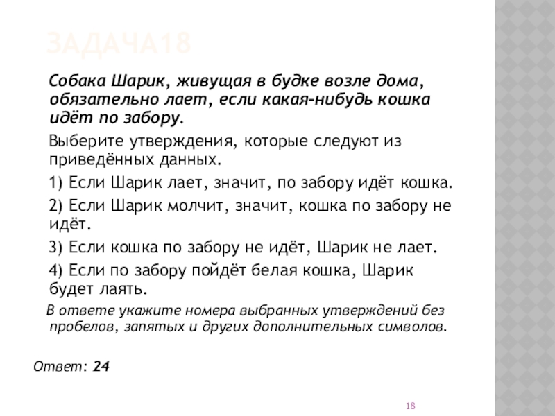 Задача №18 — это задача отбора истинных утверждений методами оценки