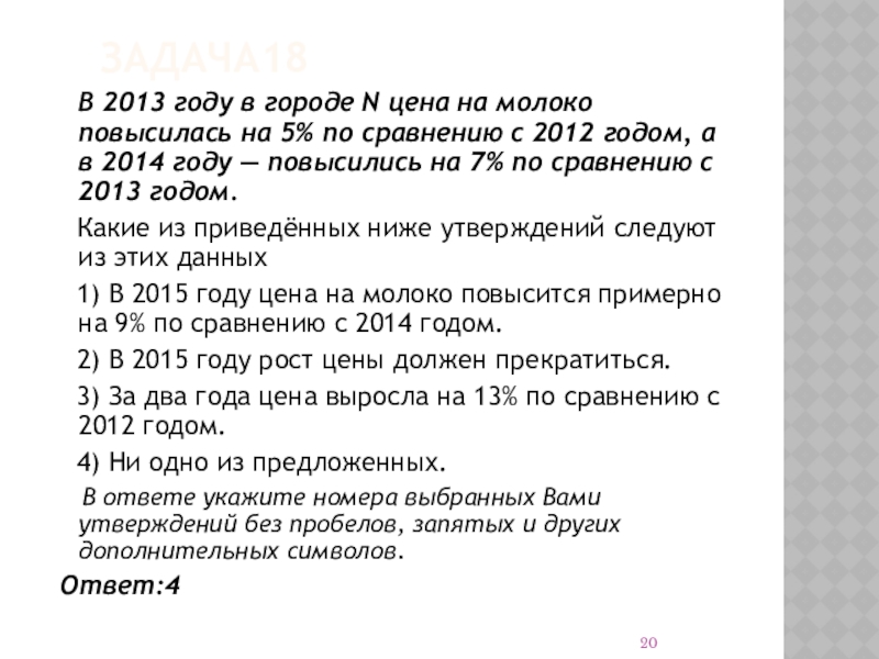 3) За два года цена выросла на 13% по сравнению с 2012 годом.