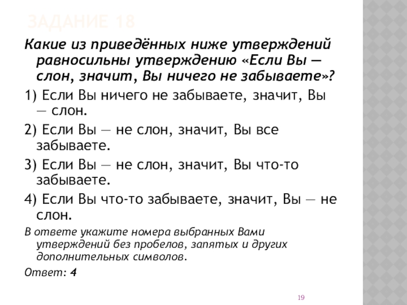 3) Если Вы ― не слон, значит, Вы что-то забываете.