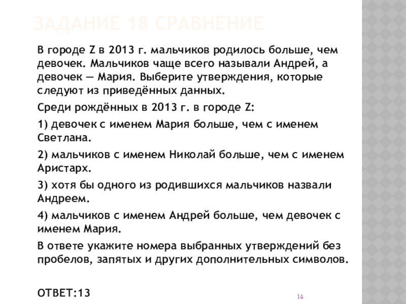 Слайд 14ЗАДАНИЕ 18 СРАВНЕНИЕ