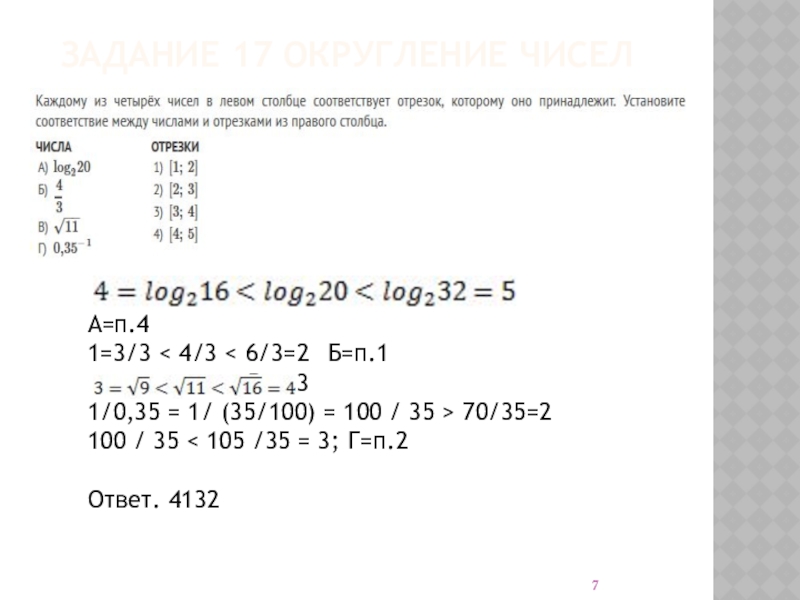 Слайд 7ЗАДАНИЕ 17 ОКРУГЛЕНИЕ ЧИСЕЛ