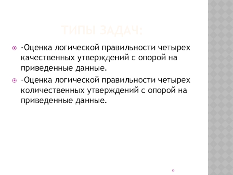 Слайд 9 ТИПЫ ЗАДАЧ: