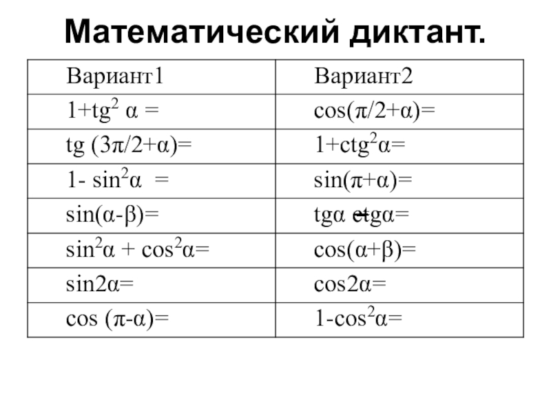 Математический диктант.