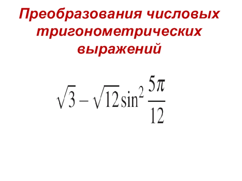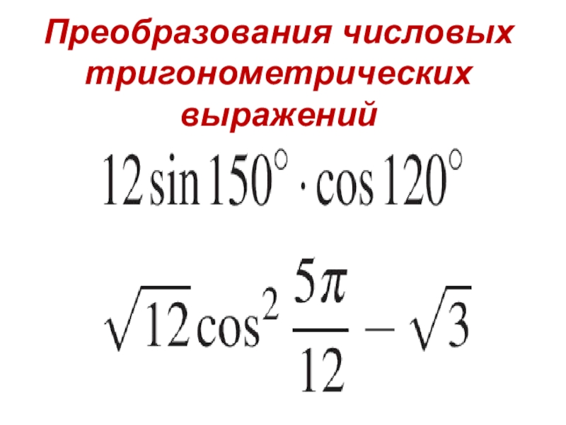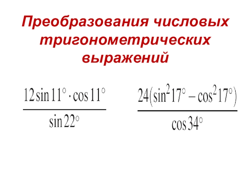 Слайд 3Преобразования числовых тригонометрических выражений