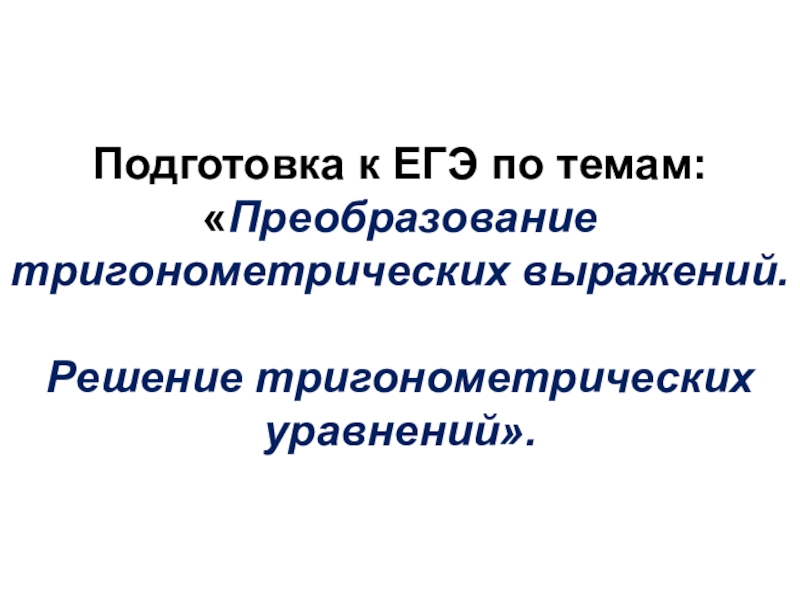 Презентация, доклад на тему Подготовка к ЕГЭ по темам: Преобразование тригонометрических выражений. Решение тригонометрических уравнений.