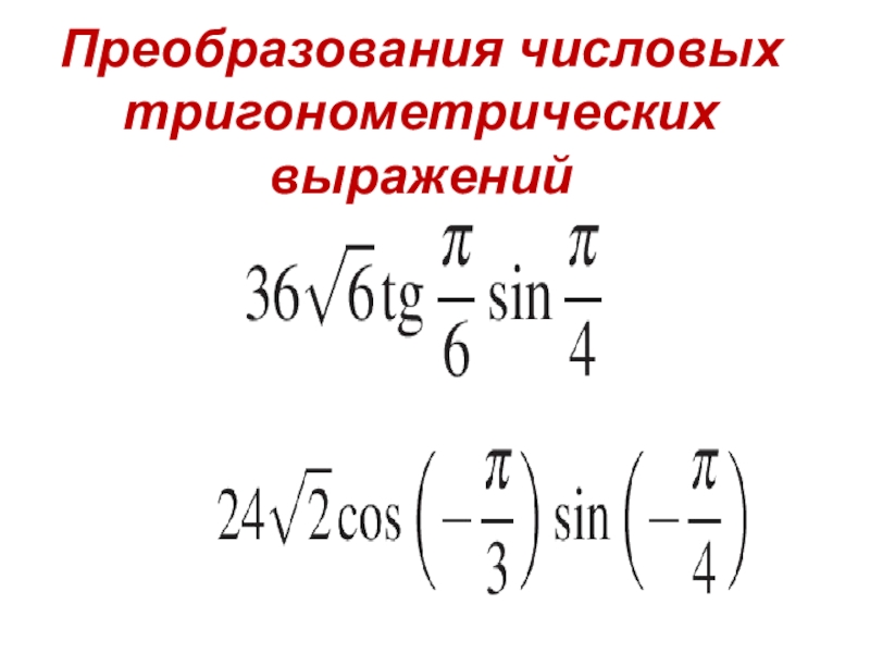 Слайд 6Преобразования числовых тригонометрических выражений
