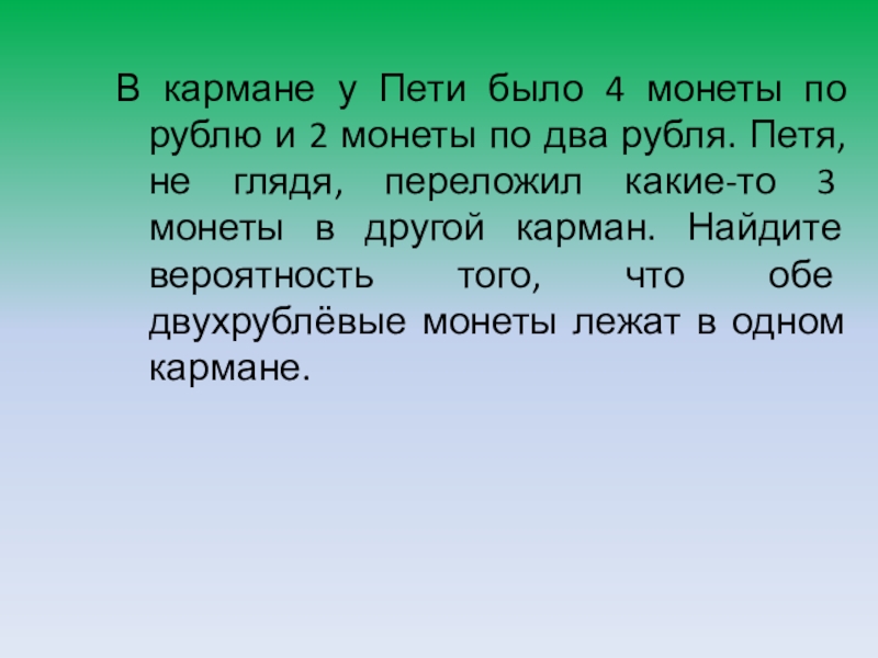 Слайд 36В кармане у Пети было 4 монеты по рублю и 2