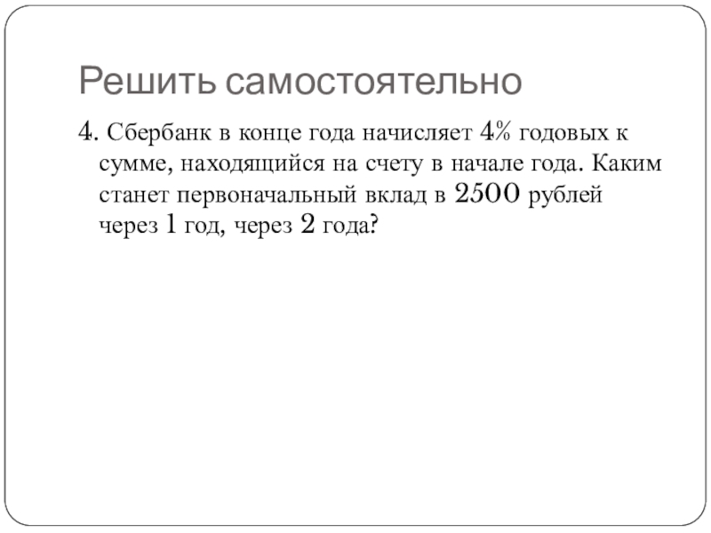 4. Сбербанк в конце года начисляет 4% годовых к сумме,