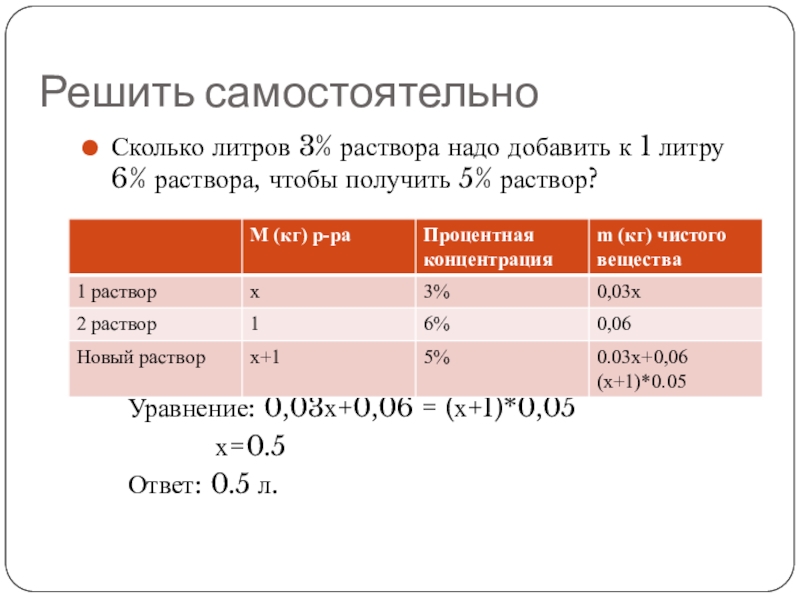 Сколько литров 3% раствора надо добавить к 1 литру 6%