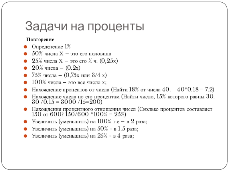 Увеличить (уменьшить) на 25% - в 4 раза;
