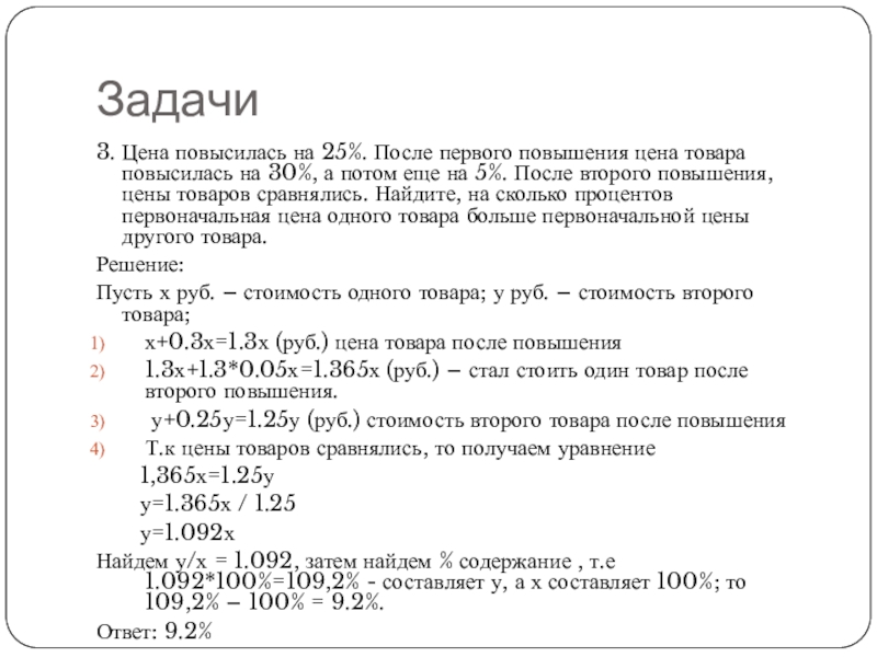 3. Цена повысилась на 25%. После первого повышения цена товара повысилась