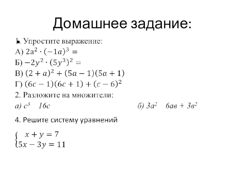 Презентация, доклад на тему Подготовка к итоговой контрольной работе по алгебре за курс 7 класса