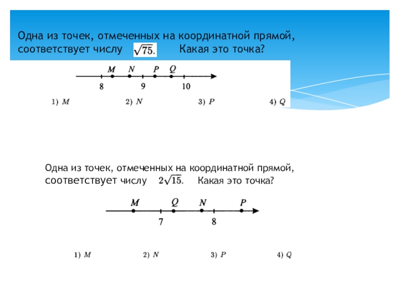Одна из точек, отмеченных на координатной прямой, соответствует числу Какая это точка?