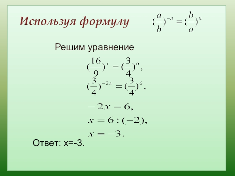 Используя формулу  			  Решим уравнение					Ответ: х=-3.