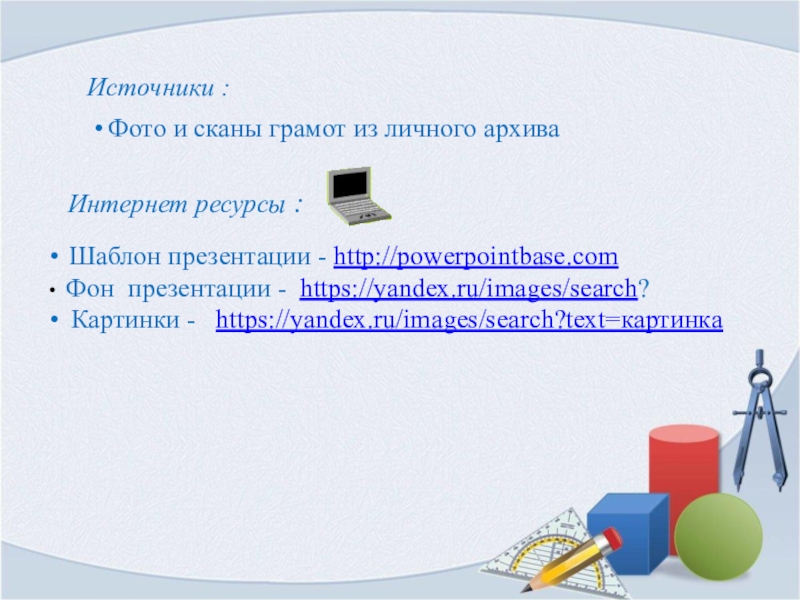 Это сайт презентаций, где можно хранить и обмениваться своими презентациями, докладами, проектами, шаблонами в формате PowerPoint с другими пользователями. Мы помогаем школьникам, студентам, учителям, преподавателям хранить и обмениваться учебными материалами.
