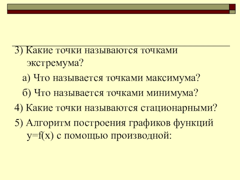 3) Какие точки называются точками экстремума?  а) Что называется точками максимума?  б) Что называется точками