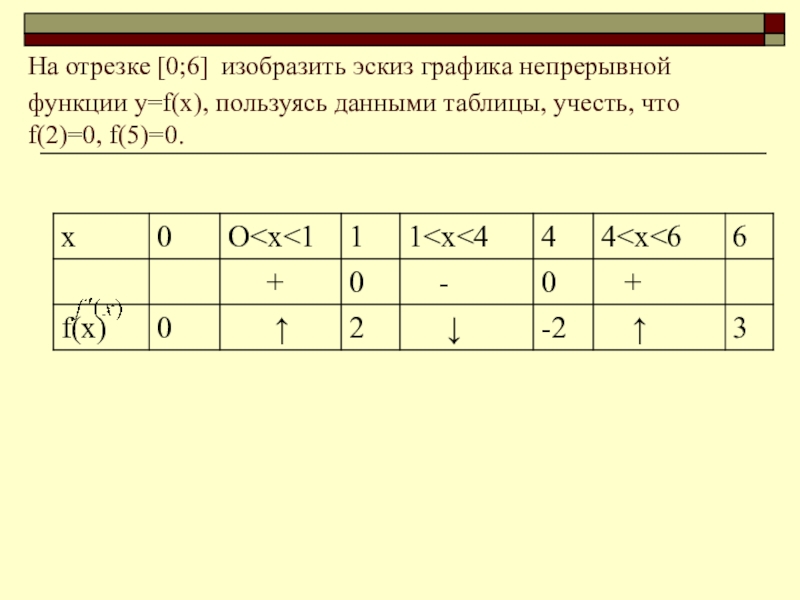 Слайд 7На отрезке [0;6] изобразить эскиз графика непрерывной функции у=f(x), пользуясь данными