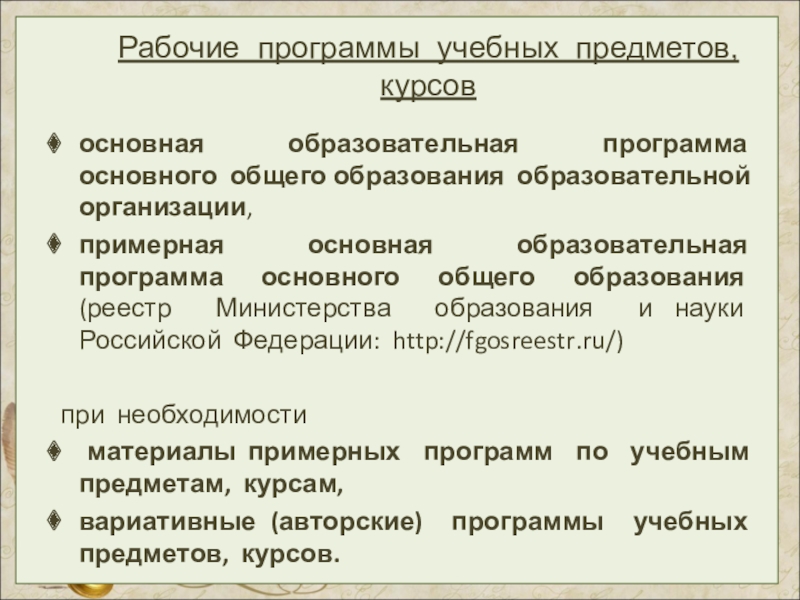 примерная основная образовательная программа основного общего образования (реестр Министерства образования и науки Российской Федерации: http://fgosreestr.ru/)