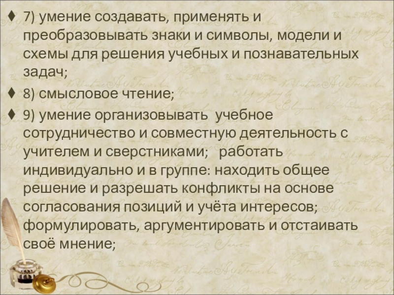 Слайд 737) умение создавать, применять и преобразовывать знаки и символы, модели и
