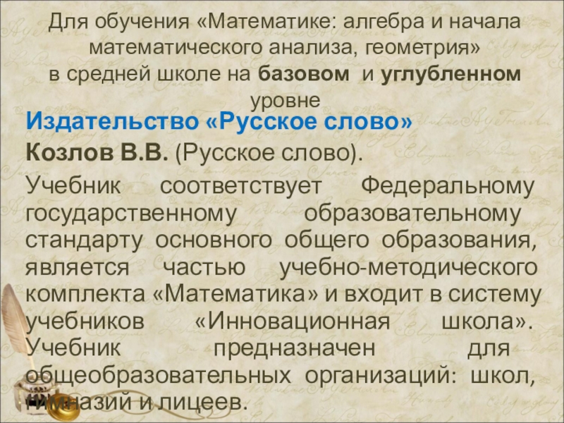 Слайд 23Для обучения «Математике: алгебра и начала математического анализа, геометрия»