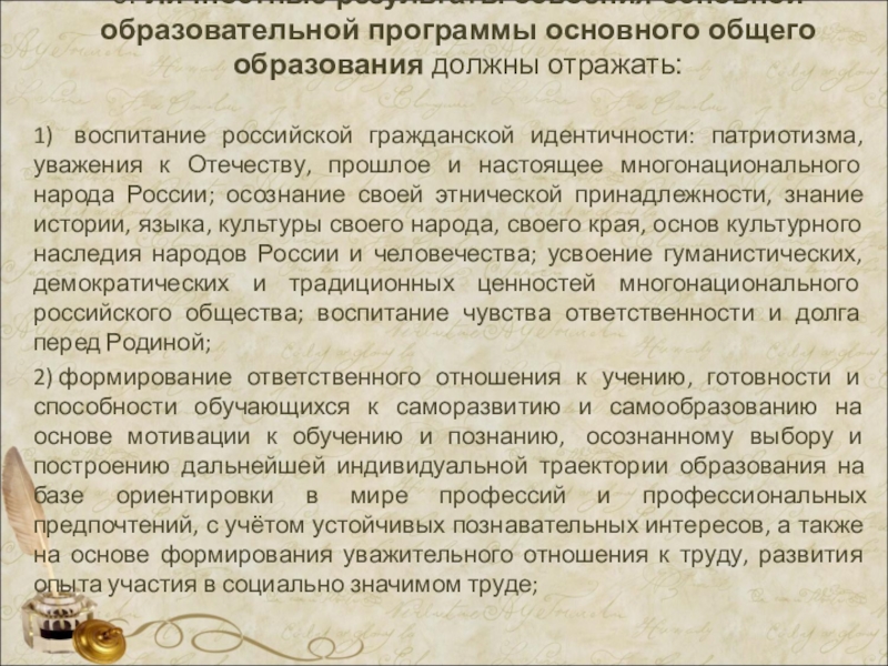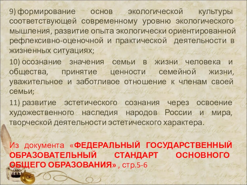 Из документа «ФЕДЕРАЛЬНЫЙ ГОСУДАРСТВЕННЫЙ ОБРАЗОВАТЕЛЬНЫЙ СТАНДАРТ ОСНОВНОГО ОБЩЕГО ОБРАЗОВАНИЯ» , стр.5-6