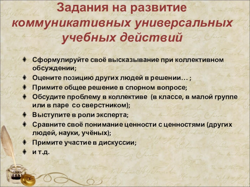 Слайд 78Задания на развитие коммуникативных универсальных учебных действий