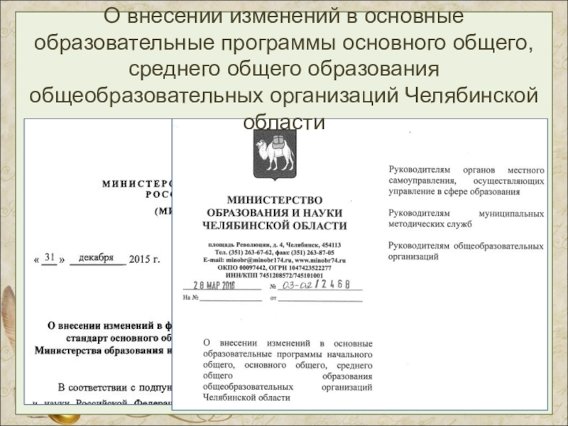 Слайд 24О внесении изменений в основные образовательные программы основного общего, среднего общего