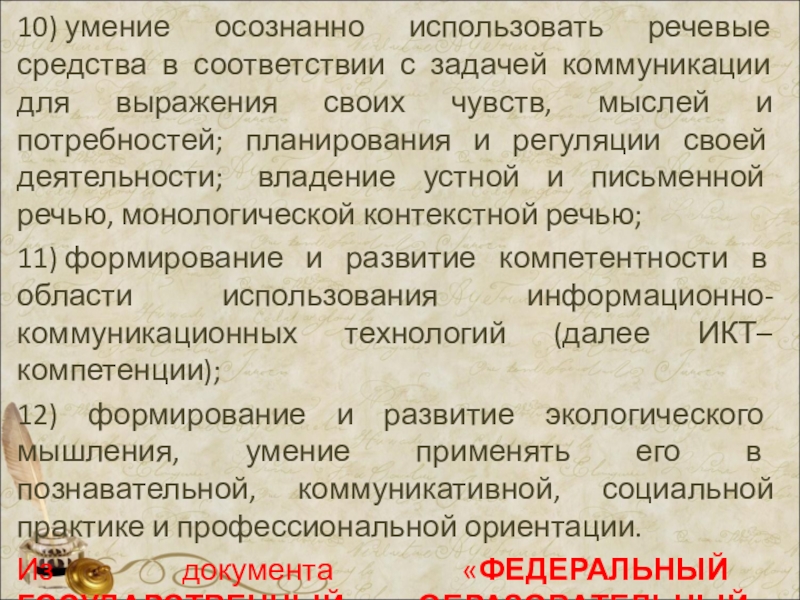 Слайд 7410) умение осознанно использовать речевые средства в соответствии с задачей коммуникации для