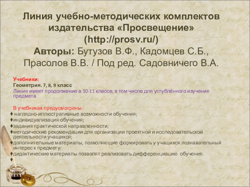 Слайд 16Линия учебно-методических комплектов издательства «Просвещение» (http://prosv.ru/)