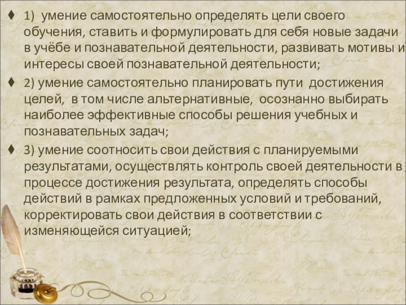 Слайд 711) умение самостоятельно определять цели своего обучения, ставить и формулировать для