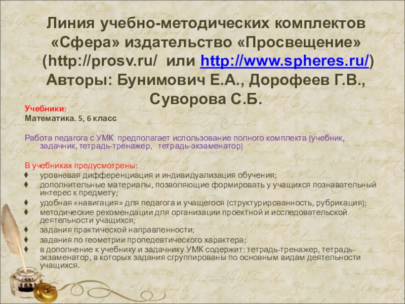 Слайд 11«Возможности УМК «Сферы. Математика. 5–6» для повышения эффективности урока»