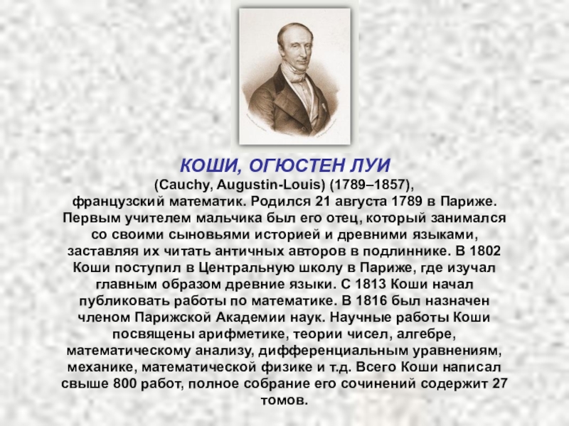 Слайд 8КОШИ, ОГЮСТЕН ЛУИ