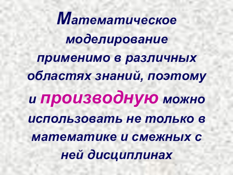 Математическое моделирование применимо в различных областях знаний, поэтому и производную можно использовать не только в математике и