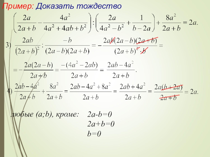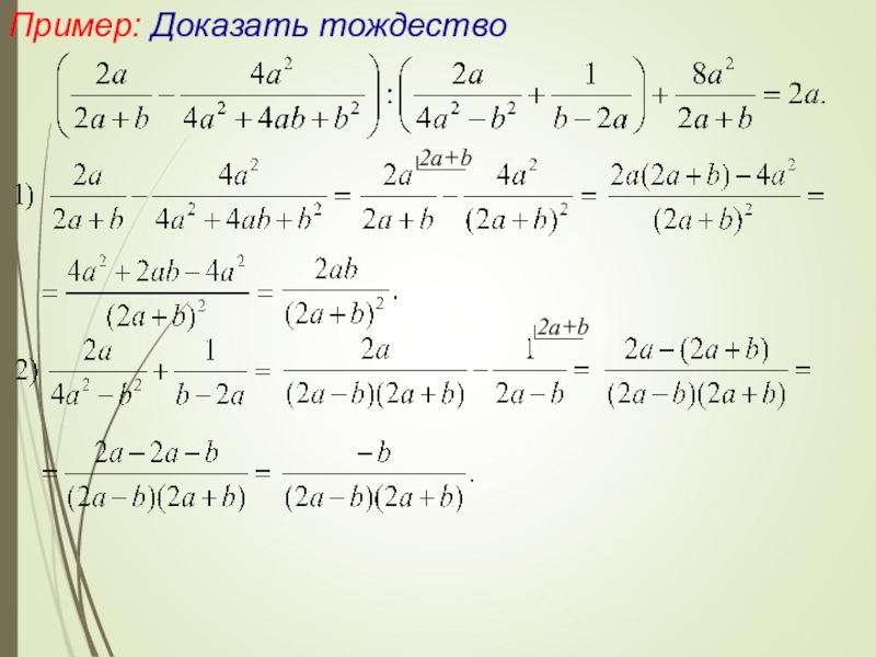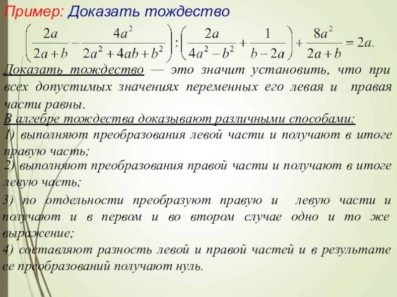 4) составляют разность левой и правой частей и в результате ее преобразований получают нуль.