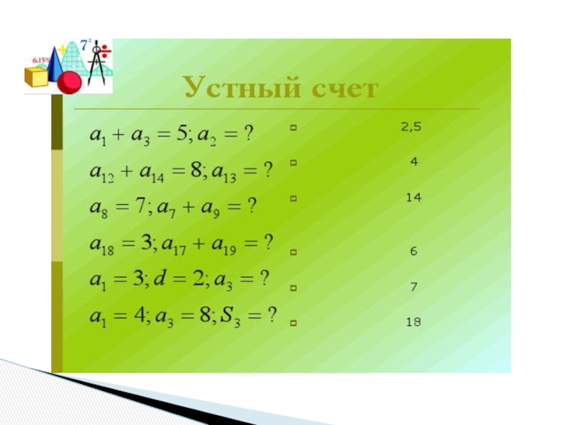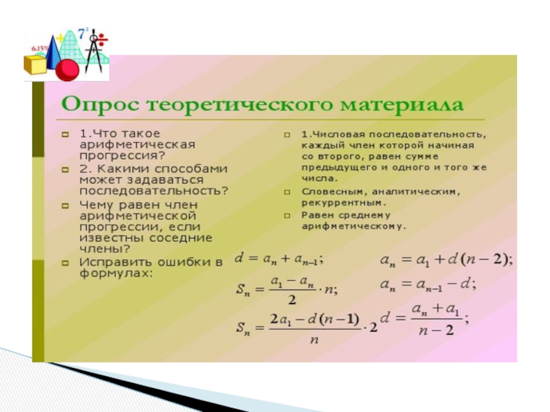 Презентаци по алгебре на тему Арифметическая пргресия Алгебра