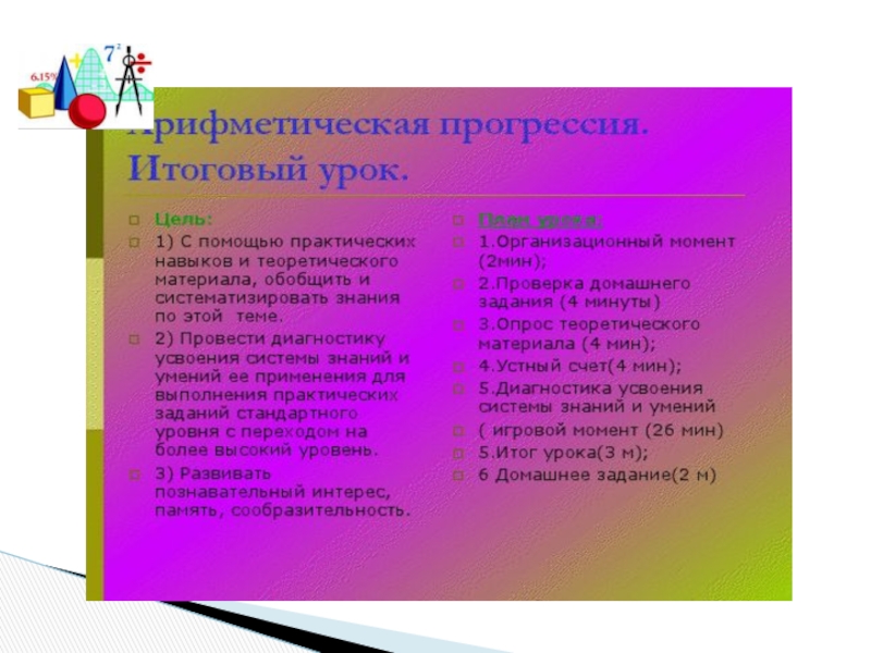 Презентация, доклад на тему Презентаци по алгебре на тему Арифметическая пргресия