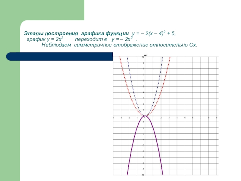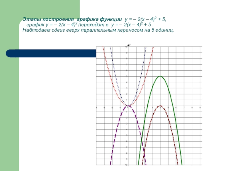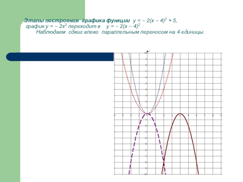 Для наглядности построим график функции у = – 2(х – 4)2 + 5, но разобьём построение на последовательные этапы