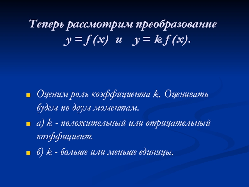 1) k – растягивает или сжимает график функции f (x) к оси ординат (Оу)