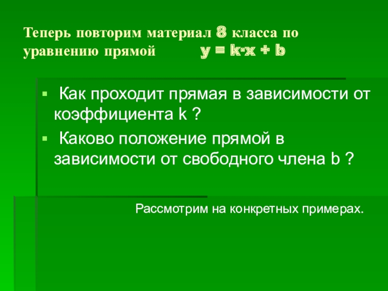 Слайд 9Теперь повторим материал 8 класса по уравнению прямой