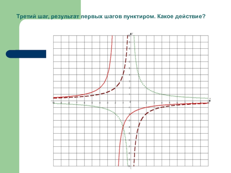 Слайд 32Третий шаг, результат первых шагов пунктиром. Какое действие?