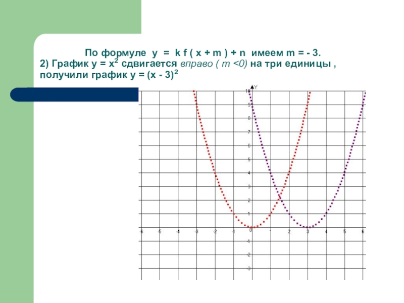 2) График у = х2 сдвигается вправо ( m <0) на три единицы , получили график у = (х - 3)2