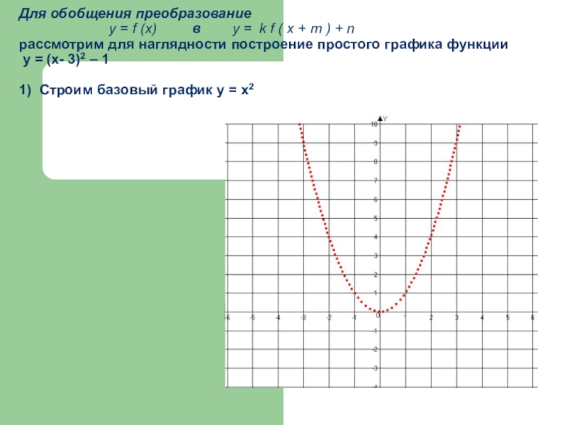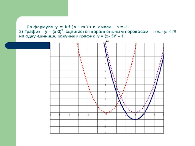 3) График у = (х-3)2 сдвигается параллельным переносом вниз (n < 0) на одну единицу, получили график у = (х- 3)2 – 1