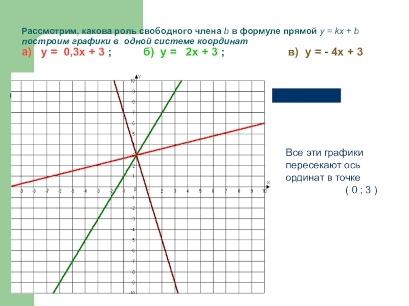 Слайд 13Рассмотрим, какова роль свободного члена b в формуле прямой у =