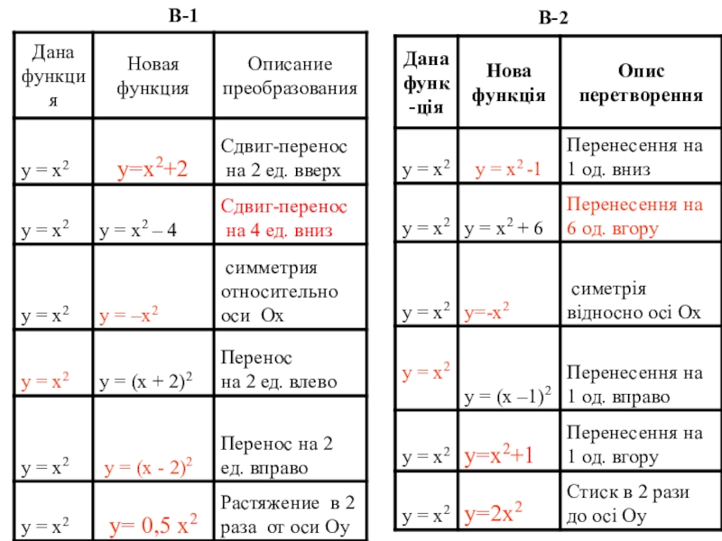 3. у =( х – 3)2 ; 4. у =( х – 5)2
