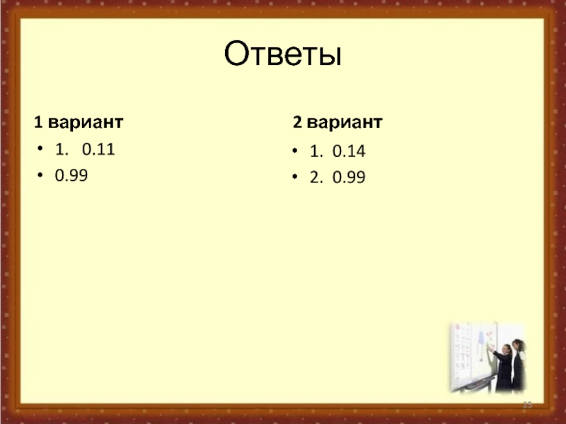 Ответы1 вариант1.  0.110.992 вариант1. 0.142. 0.99